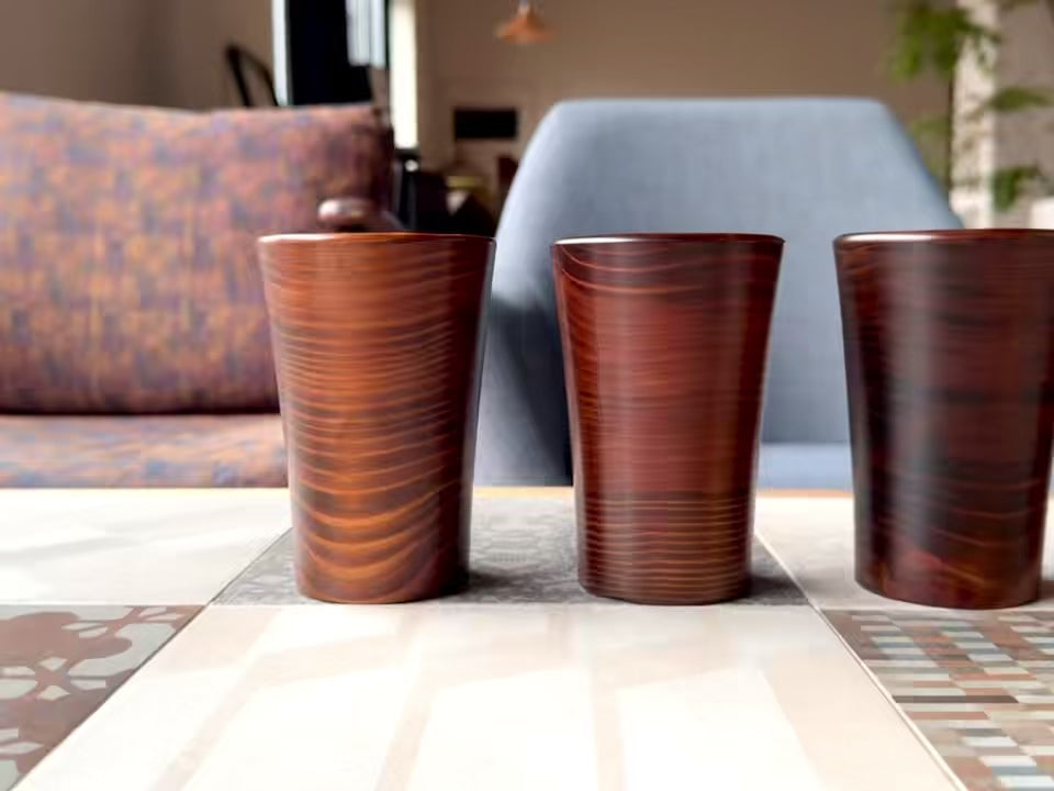 すらりと伸びた、モダンでクールな佇まい。 五回塗り重ねることで浮かび上がる年輪は、神山の森が刻んだ歴史そのもの。「侘び」の心を感じるマットな表情が、日常に静かな落ち着きを与えてくれます。