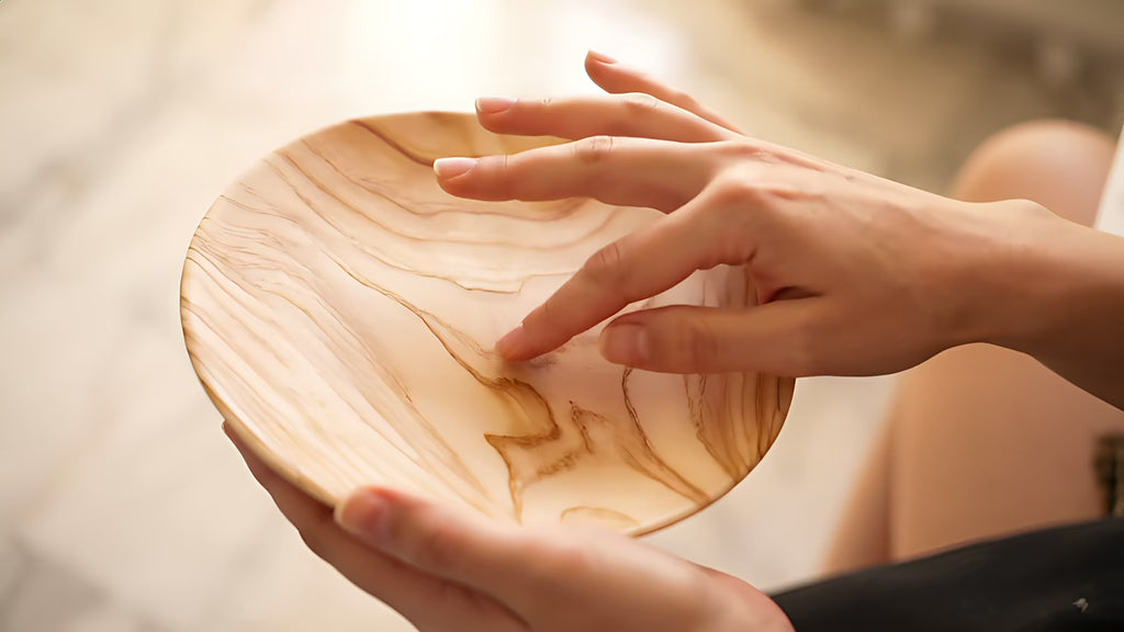 軽い・気持ちいい・他にない。SHIZQ食器の特徴です。手に持ったときの手触り、ひとつひとつ全く異なる個性的な年輪。持ったとき、必ず驚く意外な軽さ。 お皿とボウルは、より自然の造形美を感じる部位を使用。杢(もく)と呼ばれるキラキラと光る模様にも時折、出会えます。